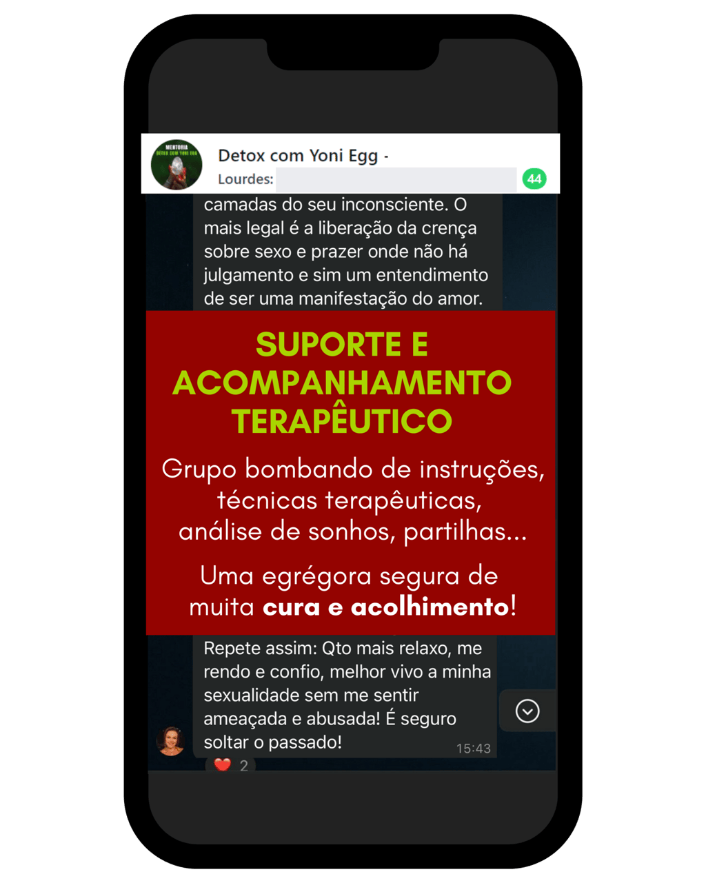 Foi ai que com a Lourdes, não consigo explicar em palavras tudo que transformei, ressignifiquei profundamente essas dores e hoje vivo uma relação mais leve e saudável comigo mesmo, com meu corpo, minha auto estima, sexualidade, libido e também com quem me relaciono!!!!