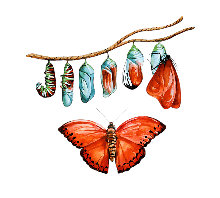 Assim como a borboleta precisa acolher todas as suas fases para emergir com liberdade e beleza, nós também precisamos acolher nossas fases para viver hoje com mais liberdade de ser quem realmente somos e viemos ser.